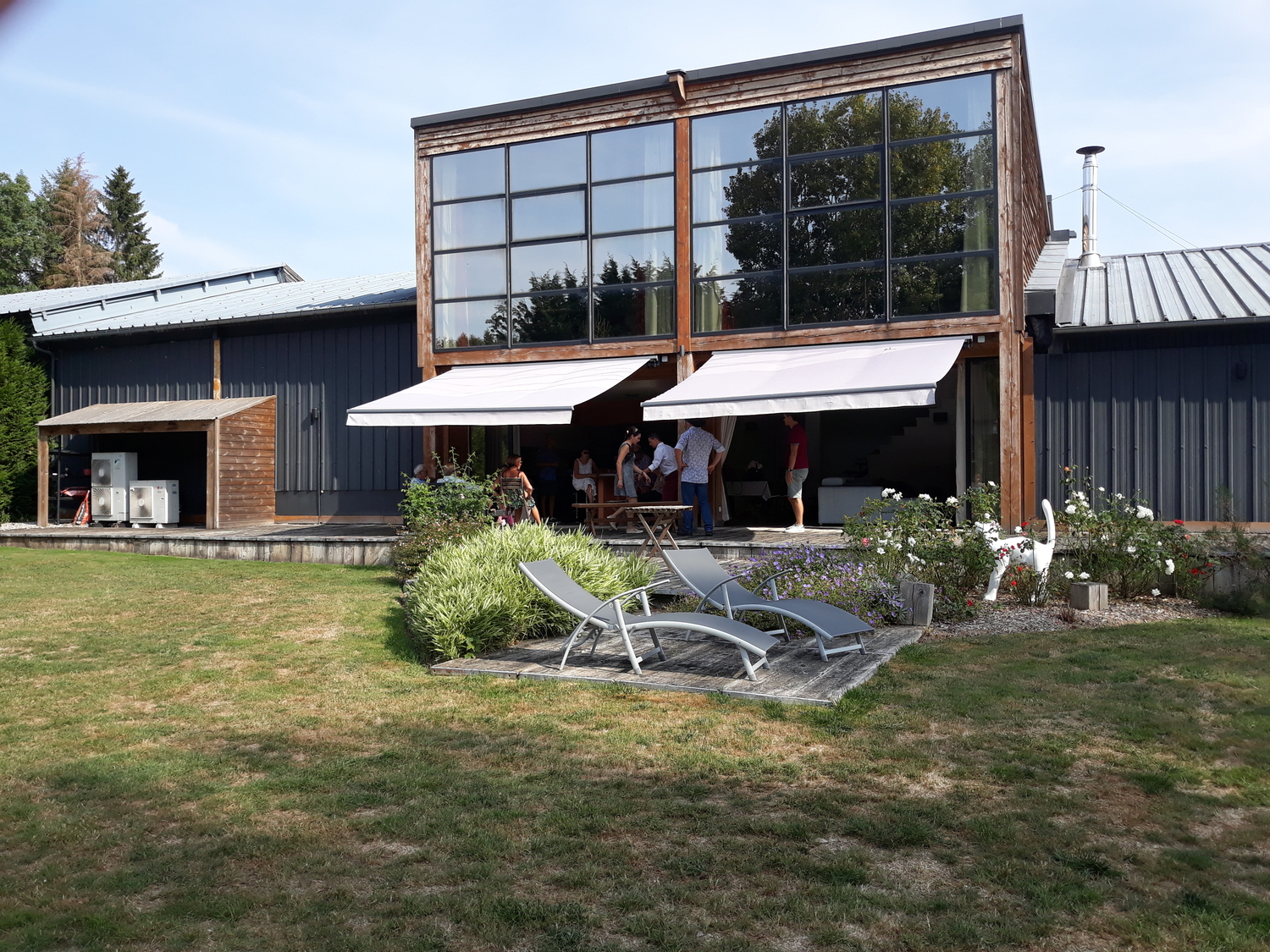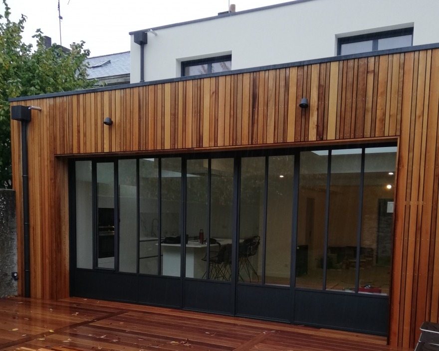 Baie vitrée en acier maison en bois